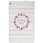 The main design has a background of weathered wooden planks. A beautiful light pink flower frame is used as the focal point of this design. The pink color of the frame and the personalization inside is the perfect contrast to the light colored wood.