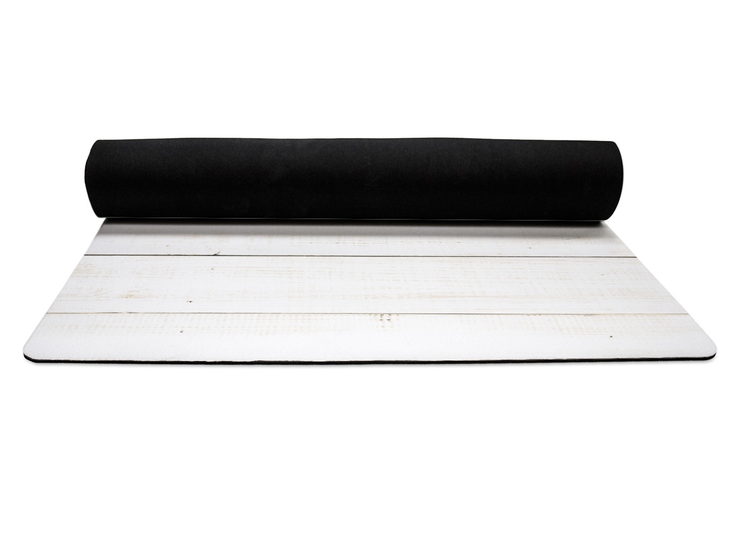 The top of the mats are dyed with your design using eco friendly non solvent inks. They have a smooth fleece felt top and feels very soft. The back of the mat is a sleek black and is a squishy non-slip texture to ensure that your mat does not slip on the floor. Our rubber backed mats are the perfect size at 68" x 24" and are just under approximately 1/4 inch thickness.