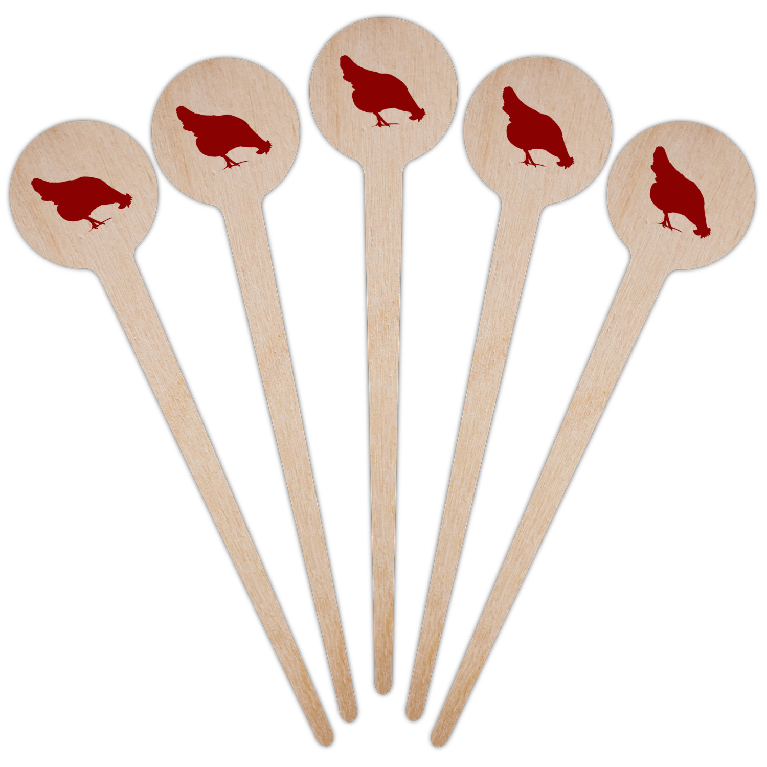 This design uses the quote "farm fresh eggs" with two crates of eggs pictured on either side and a beautiful scrolling design below. The quote has a bright and dark red, both which stand out beautifully against the burlap textured background. This quote and a chicken graphic are used throughout the design.