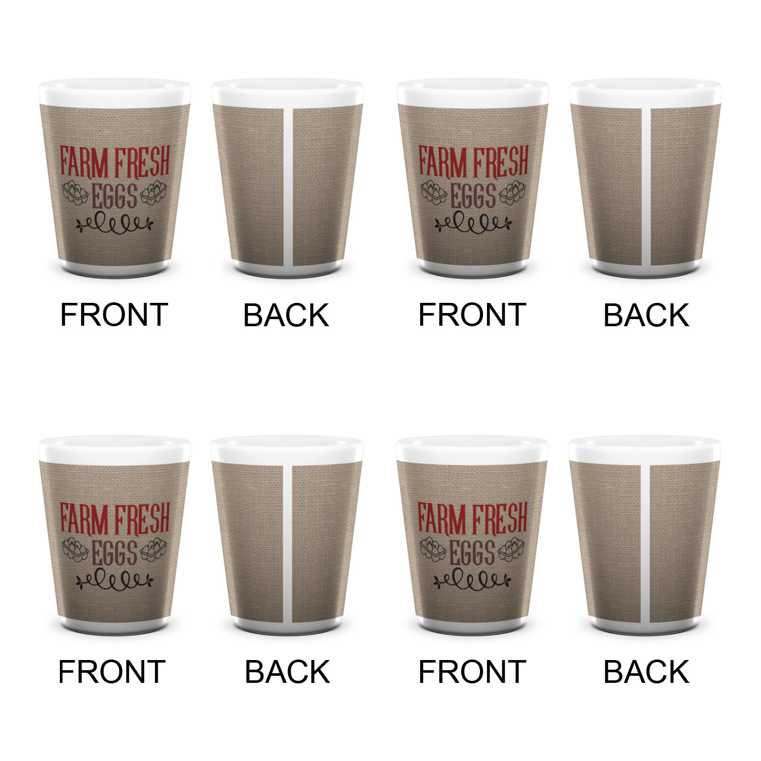 Made from ceramic these shot glasses are printed in full color with the design of your choice. These are a standard 1.5oz size and stand 2.25" tall. Available in a full white ceramic or a two-tone with a black color inside the shot glass. Buy a single or a set of 4, all of which can be designed separately to get you just what you want and need.