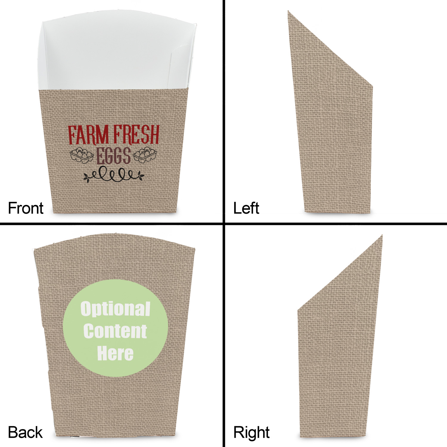 These favor boxes are printed in full color on quality cardstock - so coordinating the french fry favor boxes to match your event's themes or colors should be a breeze. You can upload your own design including artwork, logos or photos