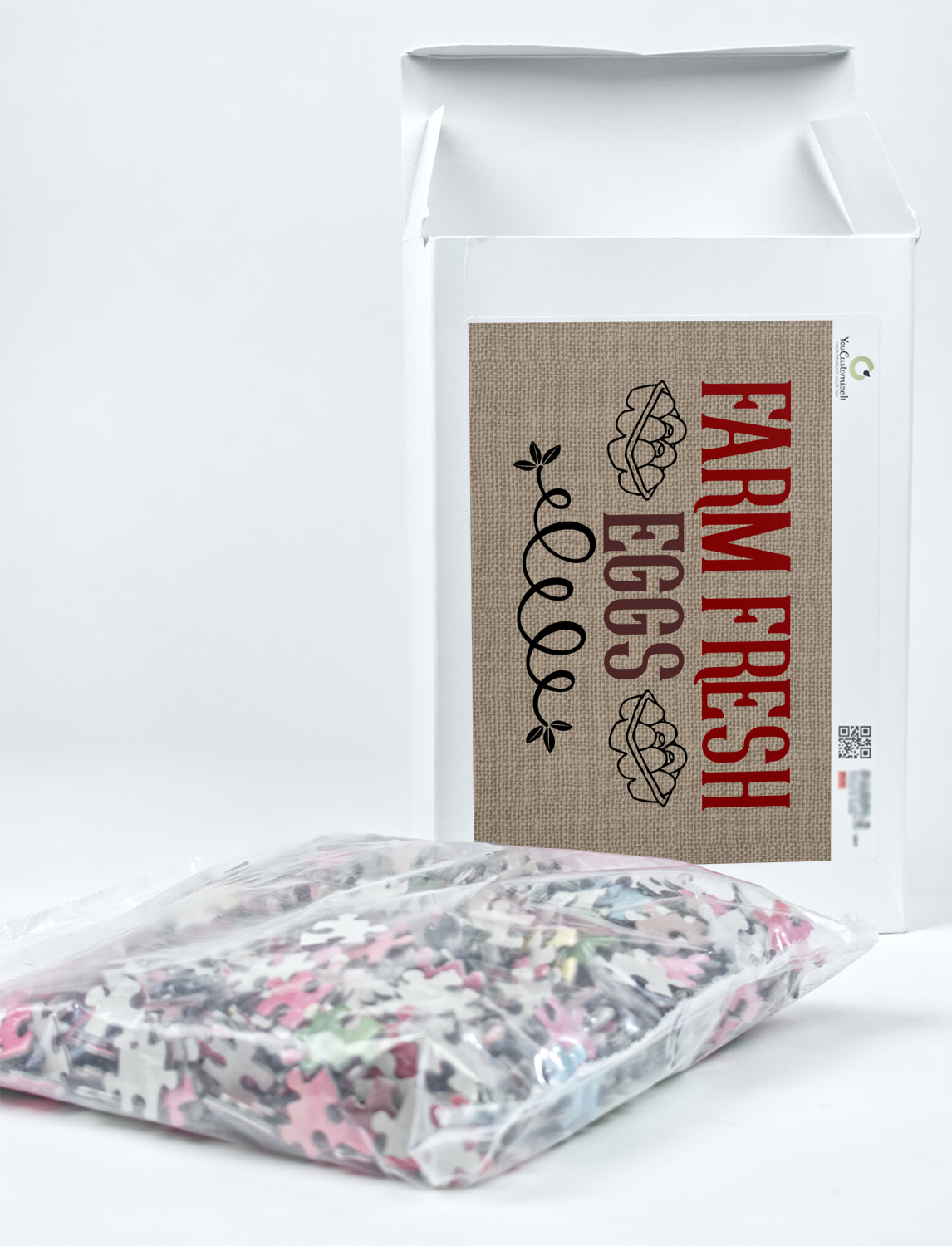 We print our puzzles on thick white chipboard in vibrant colors, then laminate the chipboard and die cut your puzzle. Your jigsaw puzzle is shipped to you in a box with the image of the puzzle on the box.
