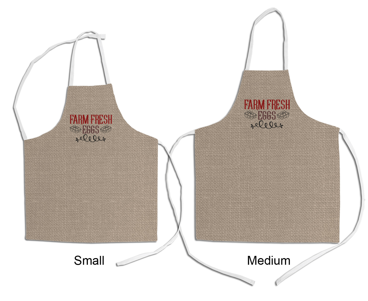 Our aprons are a lightweight yet durable polyester material. These aprons come in two sizes to fit most kids. We print your custom design on the front of the apron to display your creativity!