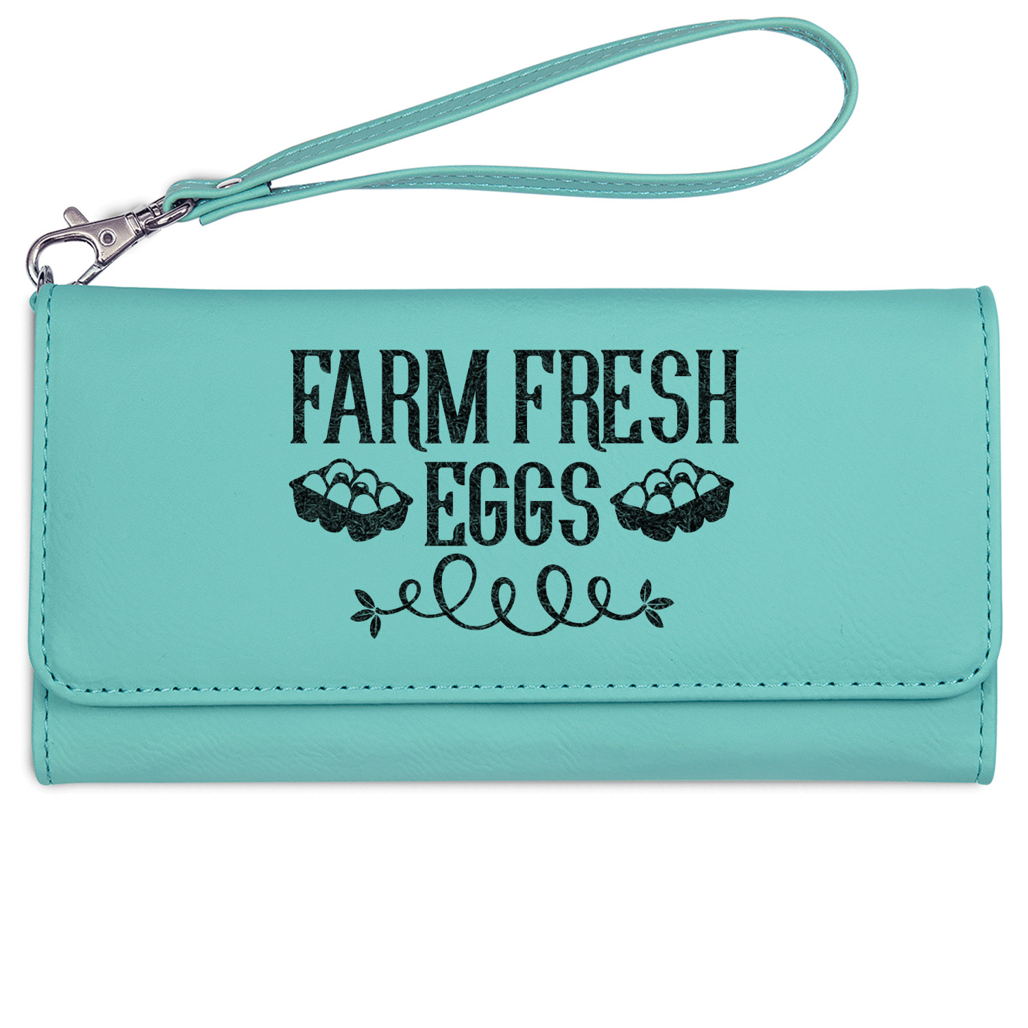 These personalized ladies leather wallets are available in 2 colors - rawhide / cognac and teal.