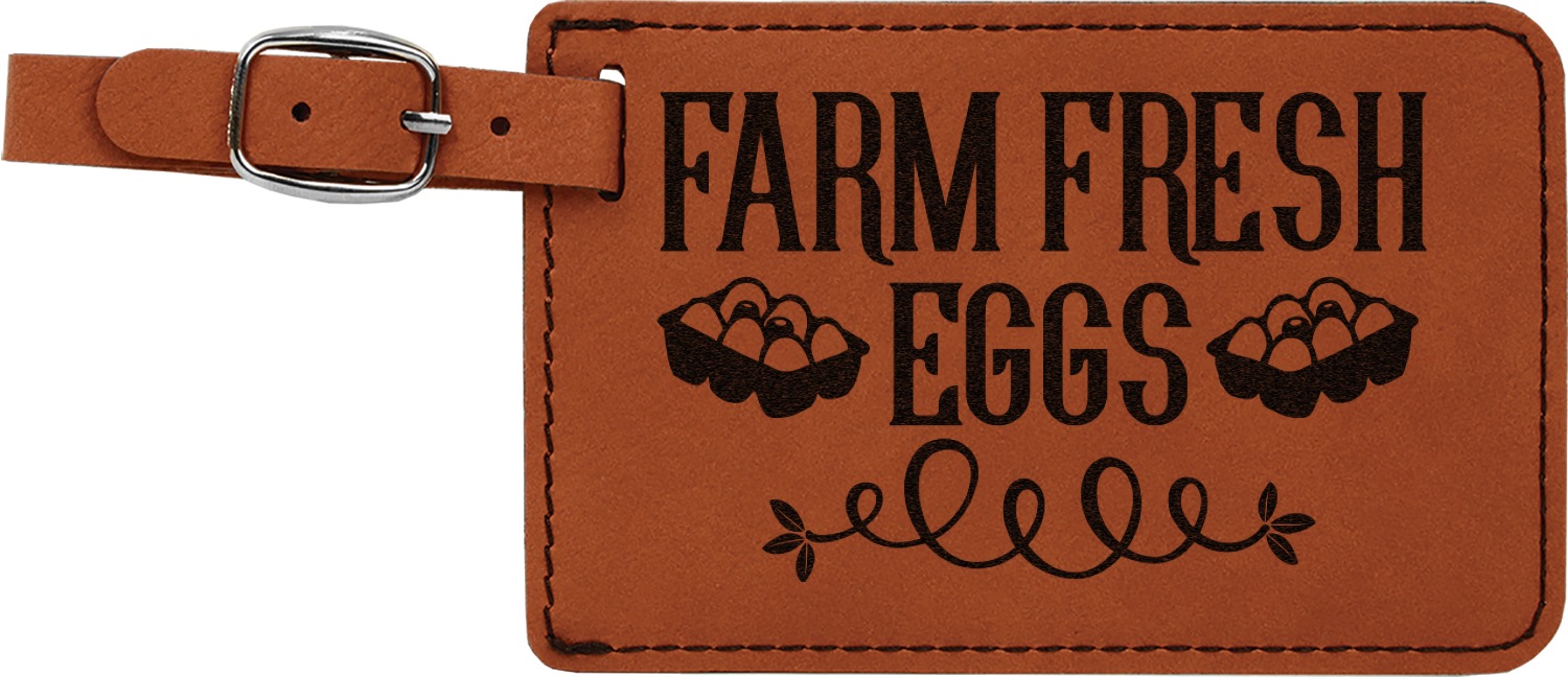This luggage tag will surely be able to get you started in having all the right tools for traveling. It is made of a beautiful leatherette material that is a nice shade of cognac brown. The front of the tag is where your design goes. The sturdy black stitching gives your design an extra pop and gives the tag extra durability. The back of the tag has a clear vinyl window where you can slip in your address card. The tag comes with a great little buckle strap that you can easily use to clip to your suitcase. The tag itself measures at approximately 5.5"W x 4.25"H.