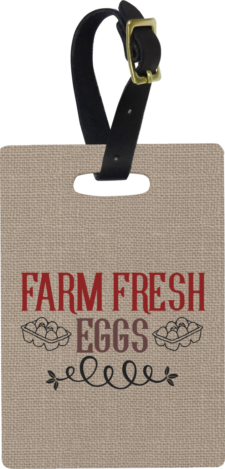 These personalized bag tags are sold in a variety of shapes, so that you may find the product that meets your vision exactly. We sell a round luggage tag, which measures at approximately 4" x 4". Our square luggage tag is about 3.5" x 3.5", while our rectangular version is 2.75" x 4 ".