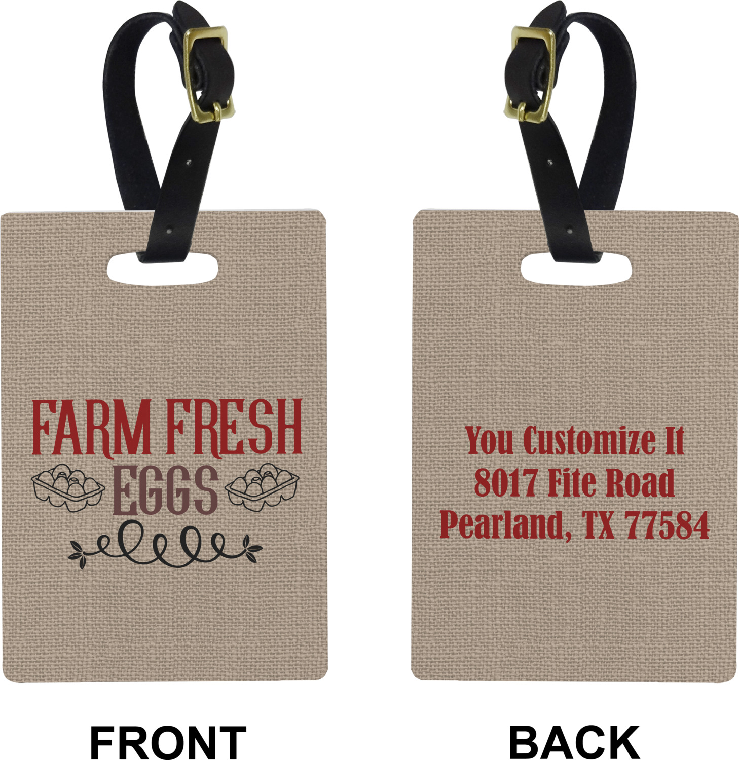 These cute luggage tags are made of a fiber-reinforced, UV-resistant plastic, making them waterproof and durable enough for both everyday use and the rugged adventures of any traveler! A leather strap with holes and a buckle is included with your purchase and can be used to attach your custom luggage tag to any suitcase, backpack, or duffel bag. You can design these travel tags as you wish; your customization will be displayed across the front, while the back will show as little or as much personal information as you want.