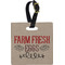 These personalized bag tags are sold in a variety of shapes, so that you may find the product that meets your vision exactly. We sell a round luggage tag, which measures at approximately 4" x 4". Our square luggage tag is about 3.5" x 3.5", while our rectangular version is 2.75" x 4 ".