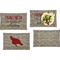 This design uses the quote "farm fresh eggs" with two crates of eggs pictured on either side and a beautiful scrolling design below. The quote has a bright and dark red, both which stand out beautifully against the burlap textured background. This quote and a chicken graphic are used throughout the design.