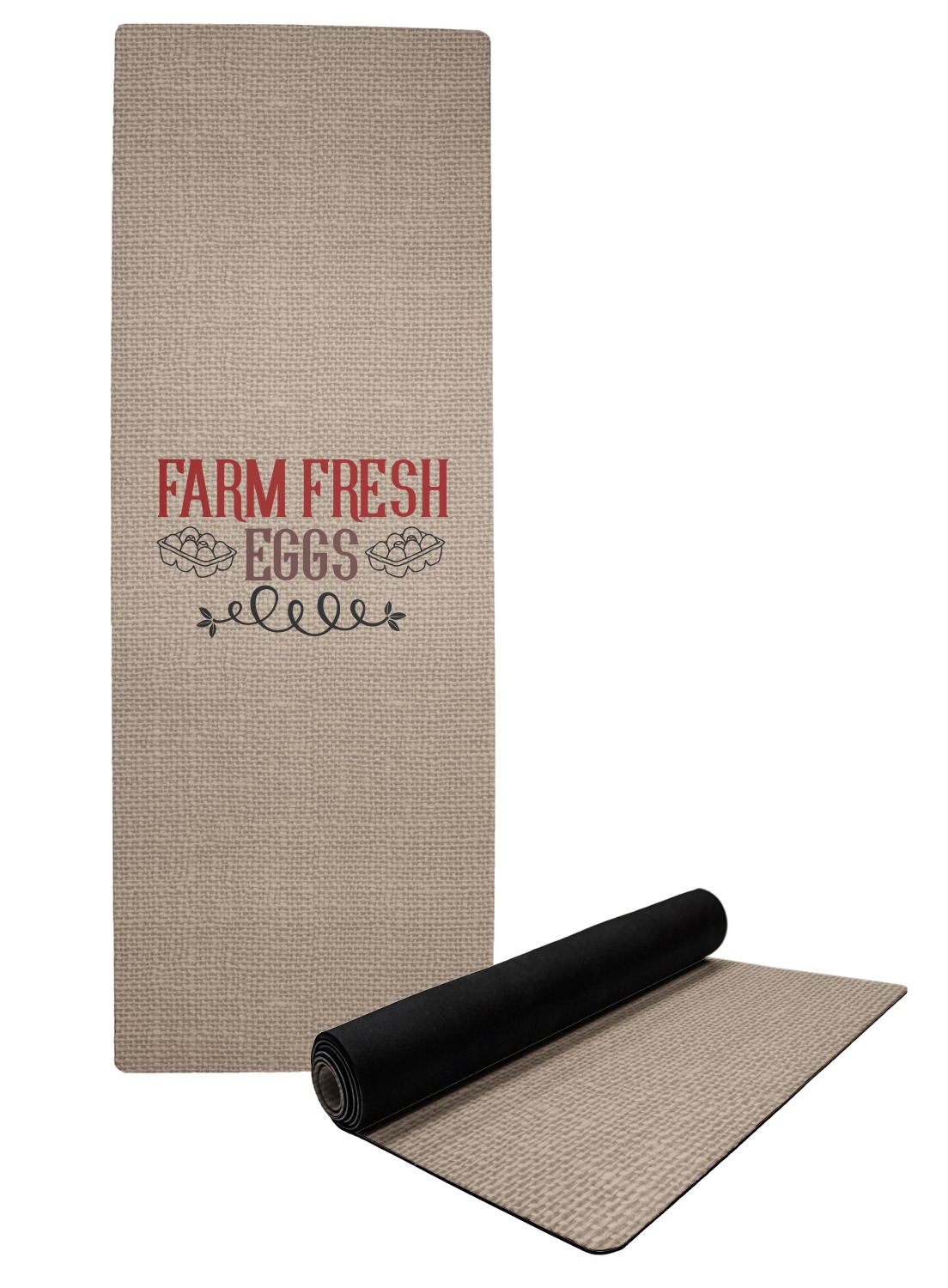 The top of the mats are dyed with your design using eco friendly non solvent inks. They have a smooth fleece felt top and feels very soft. The back of the mat is a sleek black and is a squishy non-slip texture to ensure that your mat does not slip on the floor. Our rubber backed mats are the perfect size at 68" x 24" and are just under approximately 1/4 inch thickness.