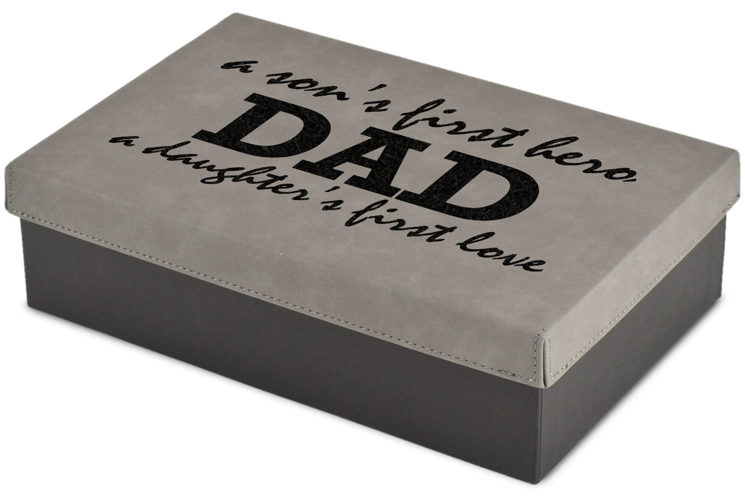 These gift boxes are available in 3 different sizes to accommodate various sized gifts. Available in gray as a neutral color for any occasion as well as to showcase your design boldly. Engraved with a laser this high quality paper board and faux leather gift box is unique and makes any gift stand out.