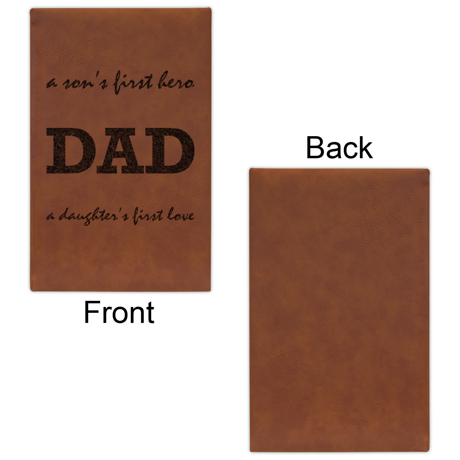 The faux leather covers are a rich cognac / rawhide color and can be customized with your design. From a simple name or monogram or a logo to a detailed mandala - the choice for customization & personalization is truly yours. Customize one of our designs or upload your own.