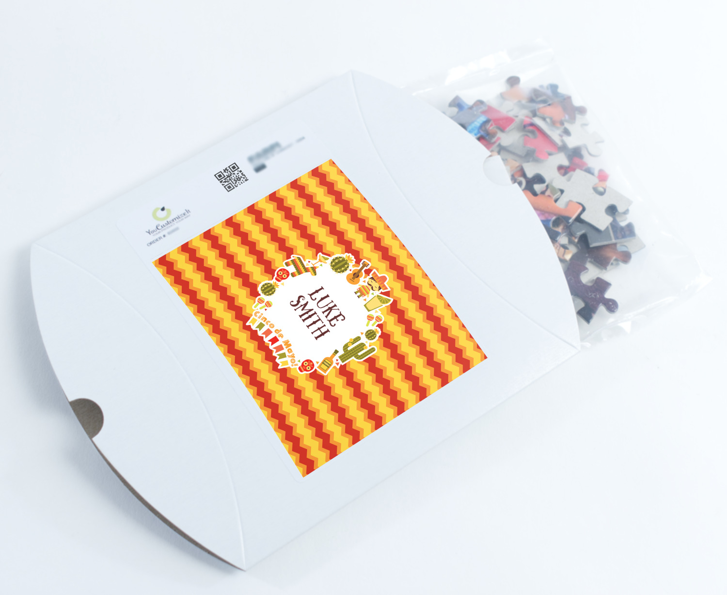 Depending on the look you are trying to achieve, you can add; a thematic pattern or background, with a photo in a frame and text or personalization to your puzzle. Basically if you can imagine it, you can design it!