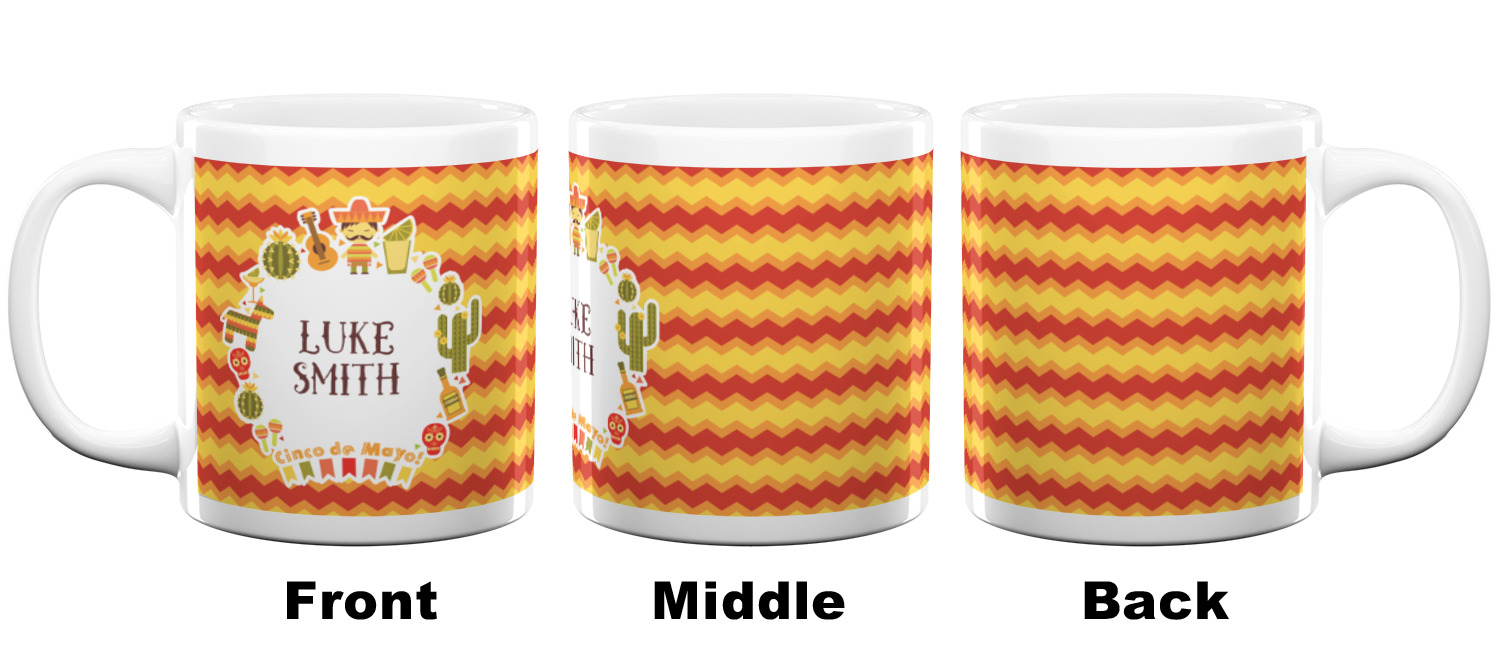 Our ceramic mugs have your design or photo printed along the surface with a gloss finish. The ceramic material of our mugs is dishwasher and microwave safe so you can reheat your tea or coffee if needed! We offer two different base colors with multiple mug sizes. The white ceramic mugs come in three size options - 11 oz., 15 oz., and 20 oz. Our black ceramic mugs are sold in either 11 oz. or 15 oz. sizes.