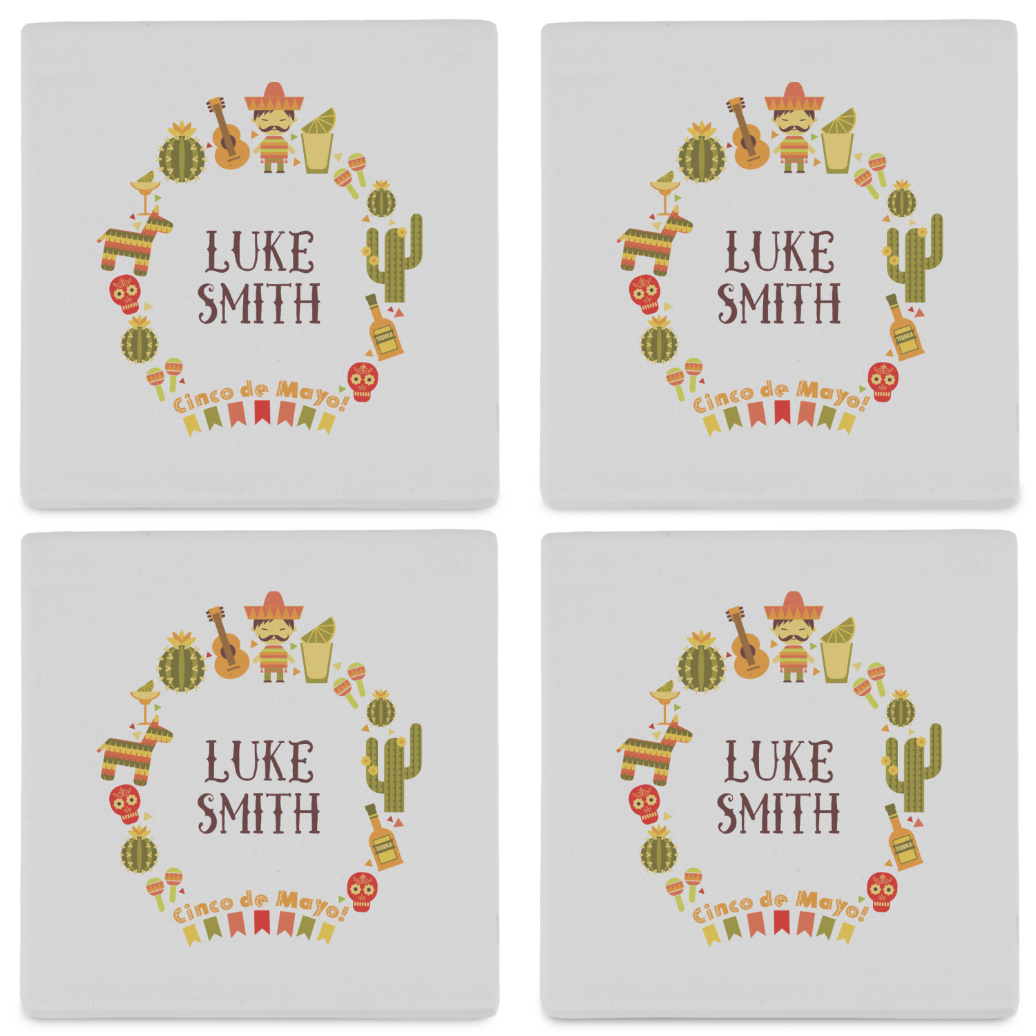 By default, the 4 coasters all have the same design on them, however, you can change that and have a different design on each one of the 4 coasters. The choice is yours.