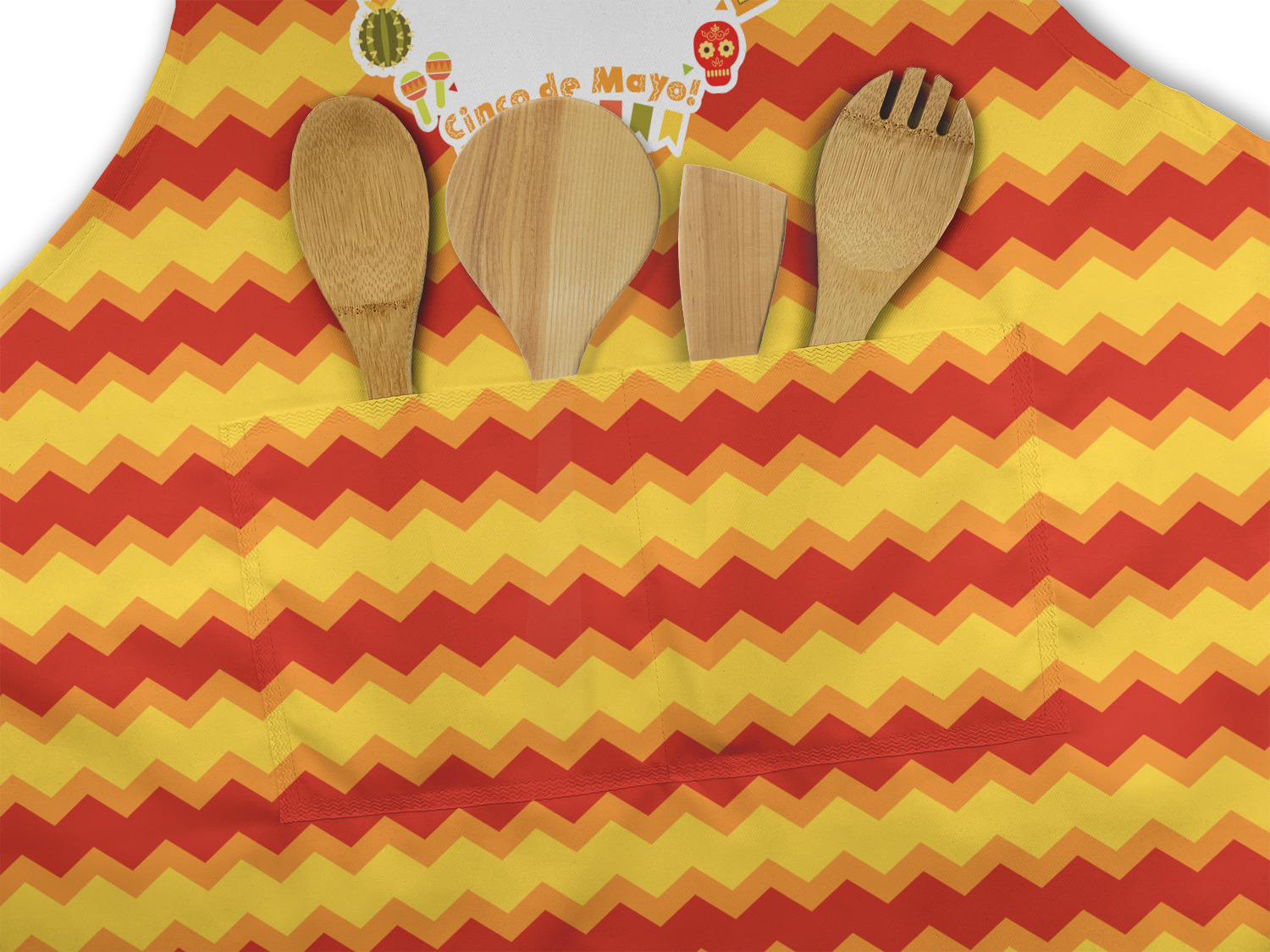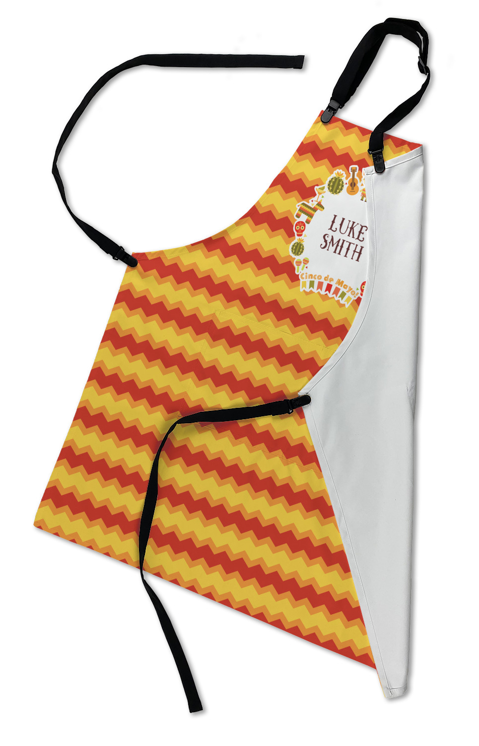 Our aprons are a lightweight yet durable polyester material. We offer two styles of aprons, one without pockets and one with two pockets adorning the center near the waistline. Each apron is one size* and comes with adjustable straps for both the neckline and waist. We print your custom design on the front of the apron to display your creativity!