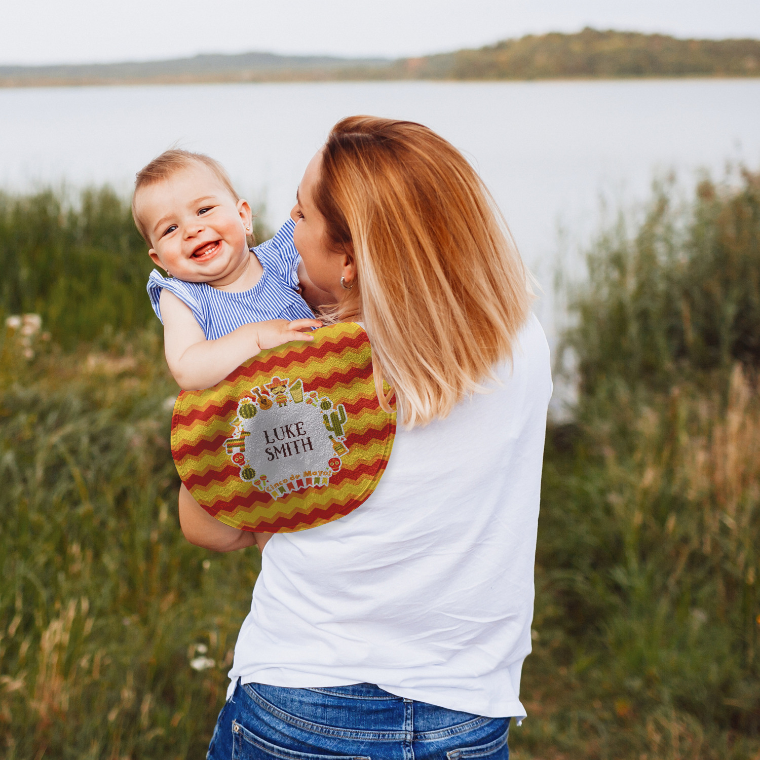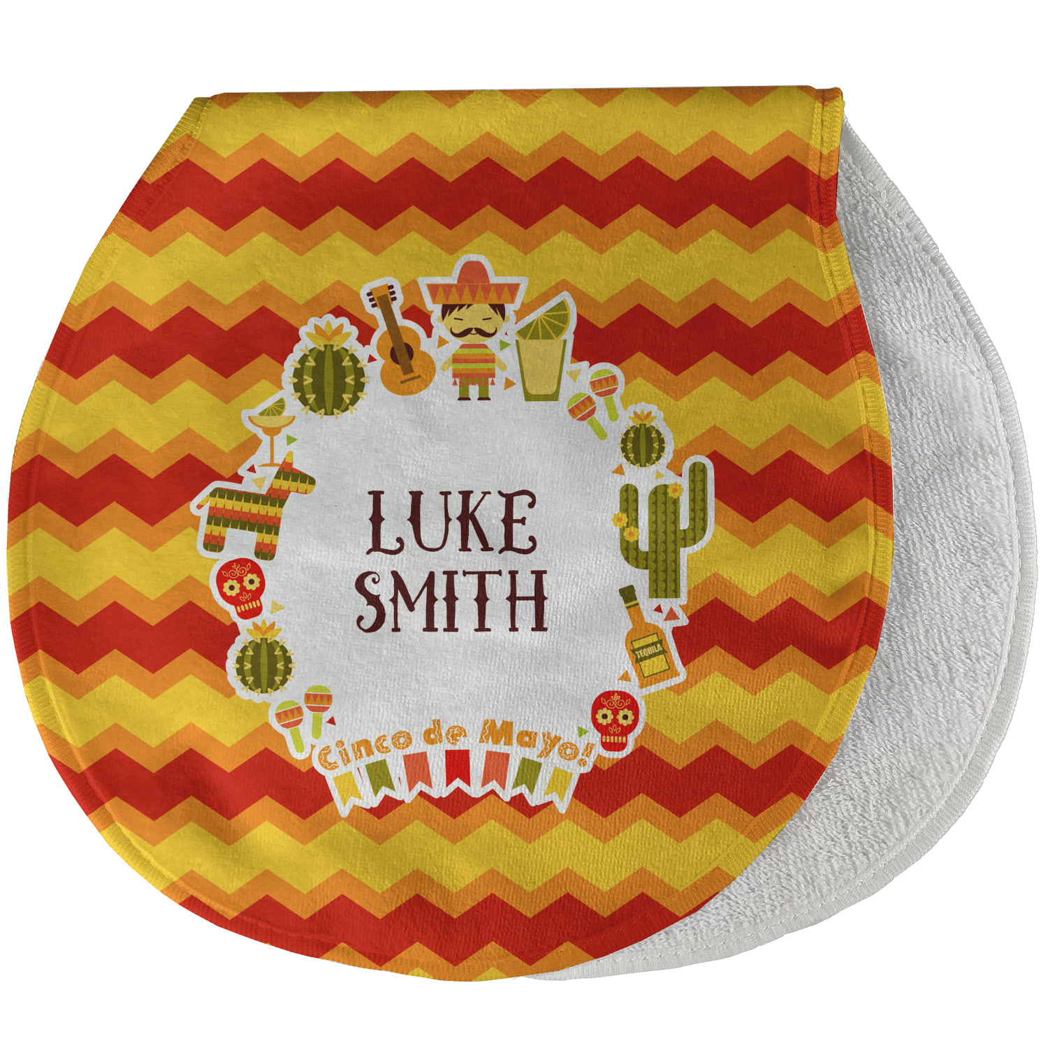 Both our baby bib and burp pad are made up of soft, microfiber velour with a cotton backing. The comfortable and plush material of our bib and burp set is perfect for both baby and parent. We print your design on the microfiber velour face fabric with baby safe ink on your customizable bib and burp cloth to ensure safety for the little one! Our drool bib also comes with a Velcro clasp for safe and easy wear while the burp cloth is a unique peanut shape that perfectly hugs over the shoulder.