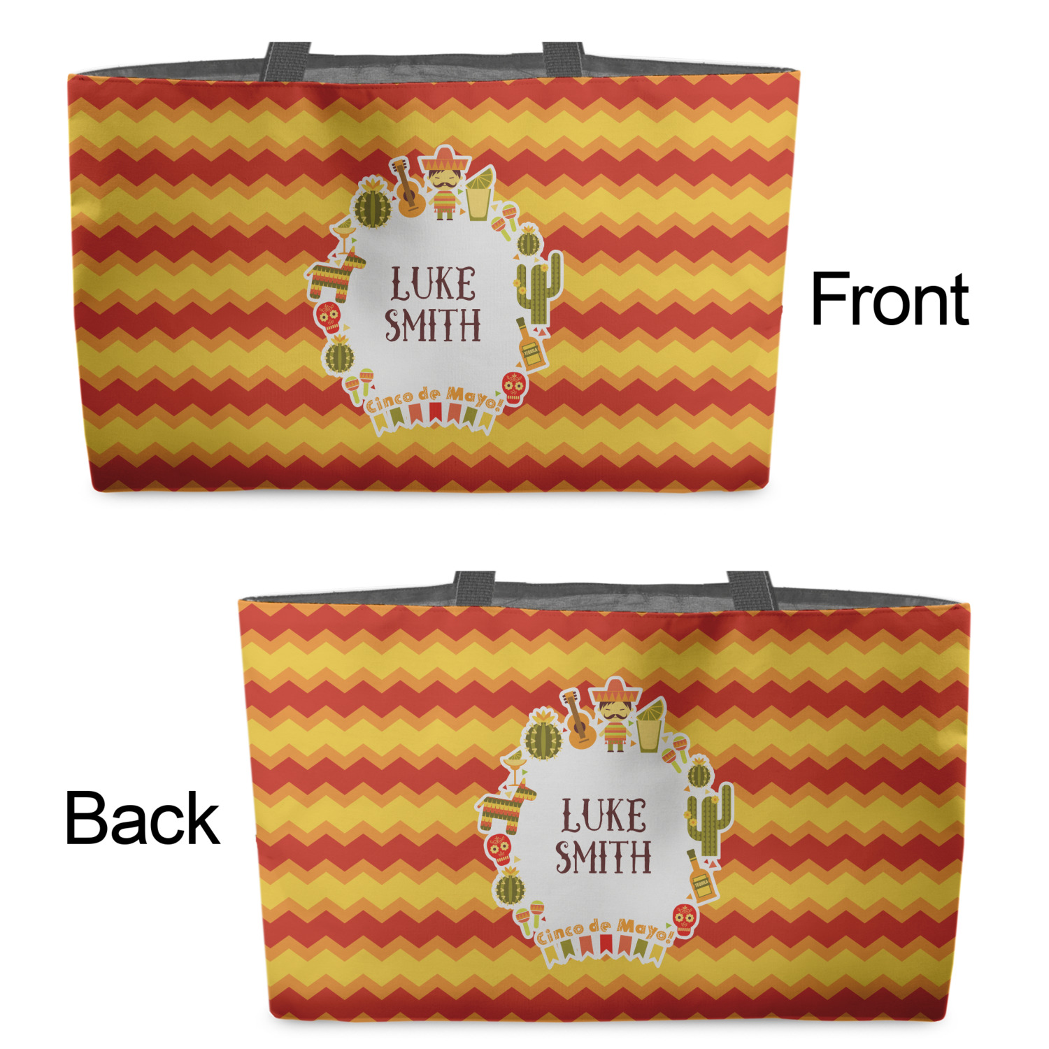 You can design the totes with a design on the front and another one on the back. The two designs can be identical or completely different. The choice is yours.