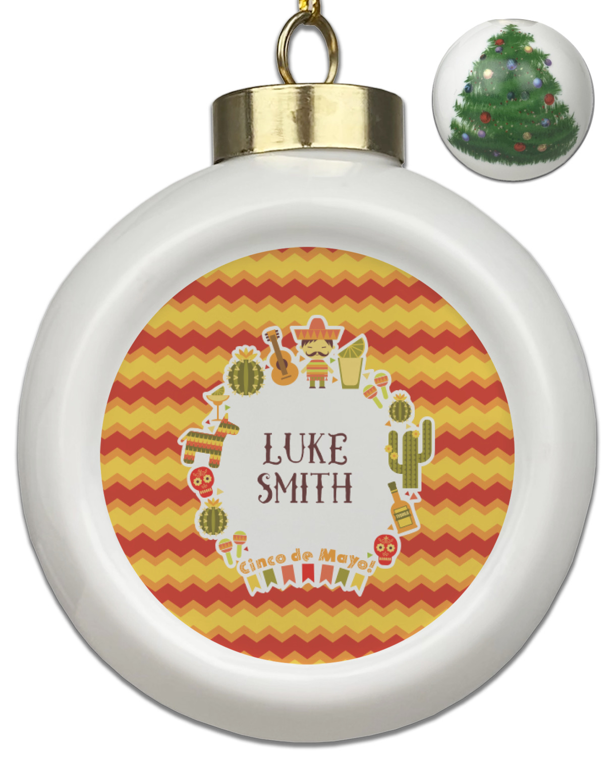 Our Christmas ornaments are a unique ceramic ball shape with a twist as it has a flat face to display your custom design! Select from one of our two design types - Christmas Tree or Poinsettia Garland - to adorn the curved back of your personal design. Each ornament measures 3H x 2.5W x 2D accompanied with a gold string accent for finishing touches to hang on your beautiful Christmas tree!