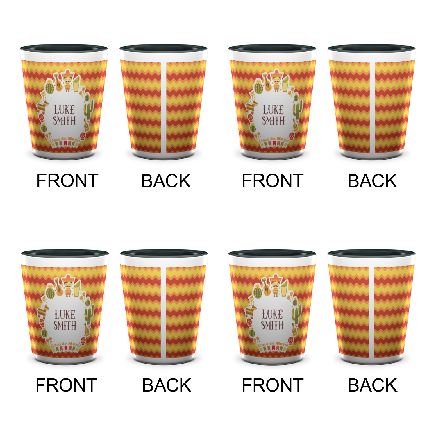 Made from ceramic these shot glasses are printed in full color with the design of your choice. These are a standard 1.5oz size and stand 2.25" tall. Available in a full white ceramic or a two-tone with a black color inside the shot glass. Buy a single or a set of 4, all of which can be designed separately to get you just what you want and need.