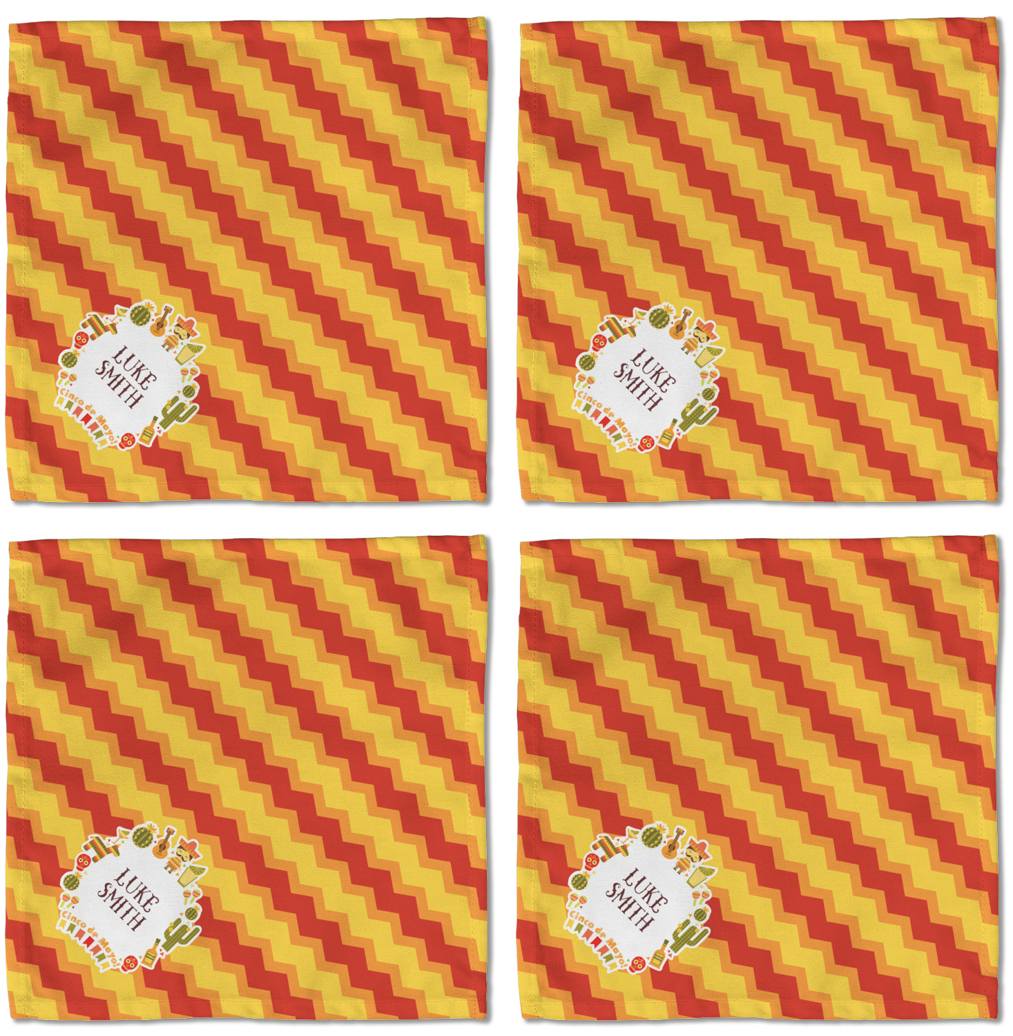 Each customizable cloth napkin is a polyester material guaranteed for long-term use. Since our napkins are cloth, it serves as a great reusable and eco-friendly dining decor. We sell personalized napkins individually or as a set of 4! Print your own unique design on all four napkins, or create four individual designs for each napkin! We offer two different napkin sizes - Cocktail napkins (approx. 10 x 10) and Dinner napkins (approx. 20 x 20). We print your design on one side, perfect for displaying your custom designed lunch napkins in any fold or table setting!