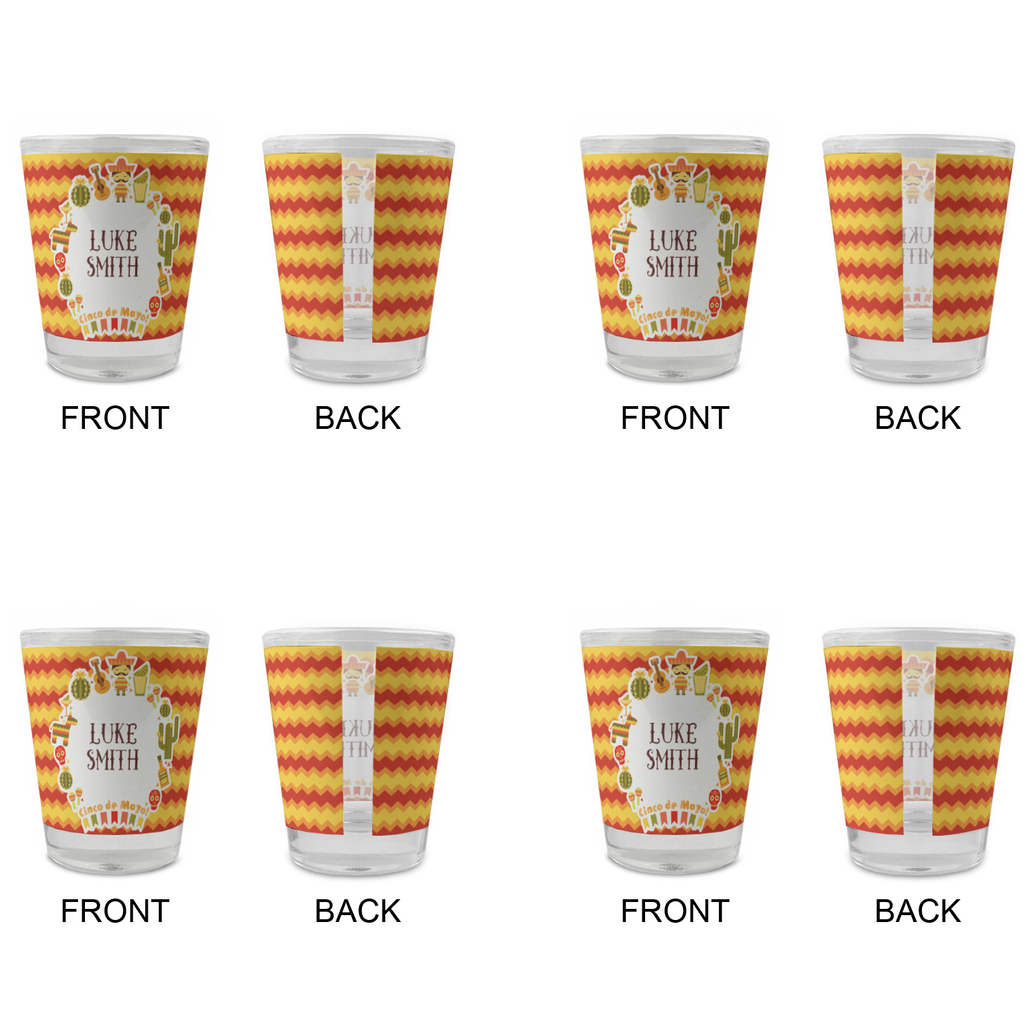 Made with frosted glass, these shot glasses are printed in full color with the design of your choice. They are a standard 1.5oz shot glass and are 2.4" tall. The print is wrapped around the shot glass in a full wrap and boldly displays your customization.