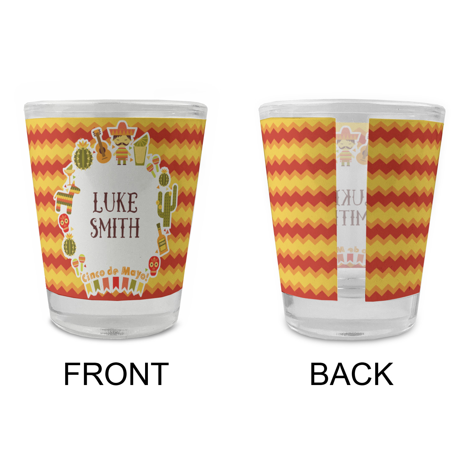 Made with frosted glass, these shot glasses are printed in full color with the design of your choice. They are a standard 1.5oz shot glass and are 2.4" tall. The print is wrapped around the shot glass in a full wrap and boldly displays your customization.