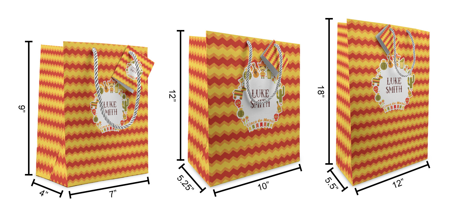 These custom gift bags come in your choice of 3 sizes. Their dimensions are below: