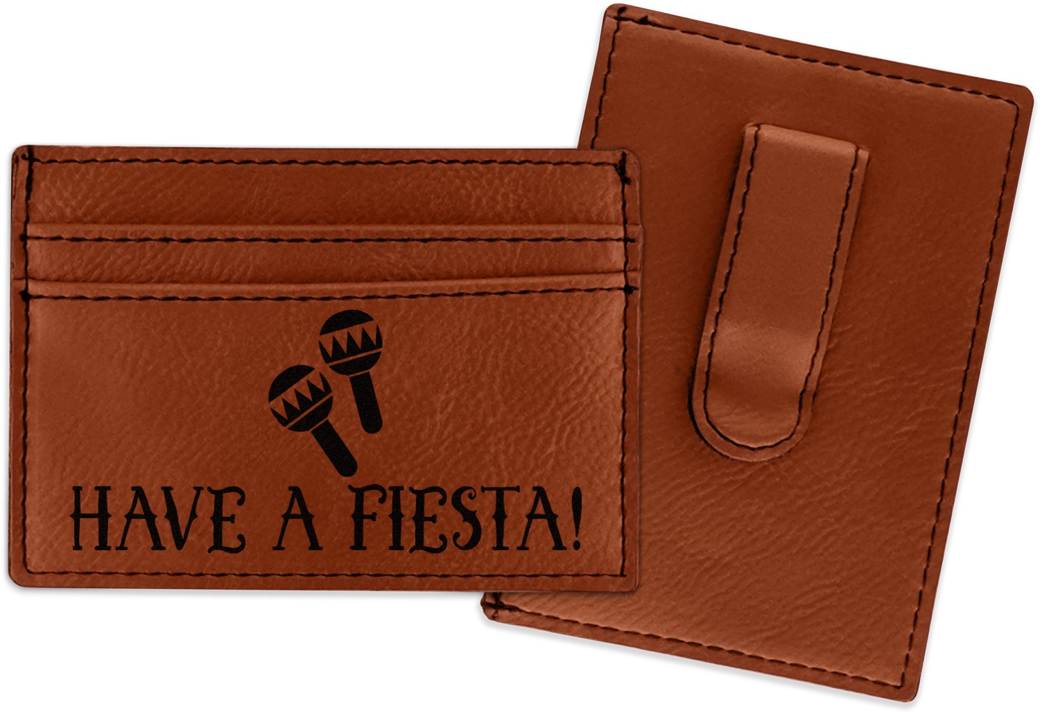 Made from a smooth brown leatherette material, these money clip wallets are the perfect accessory. They measure at approximately 4" x 2.75". On one side there is a money clip where you can slip in your cash. On the other side are three card slots for an ID and credit card or two. The money clip wallet will be laser engraved with your design on the side with the credit card slots. The graphic will come out as a black color.
