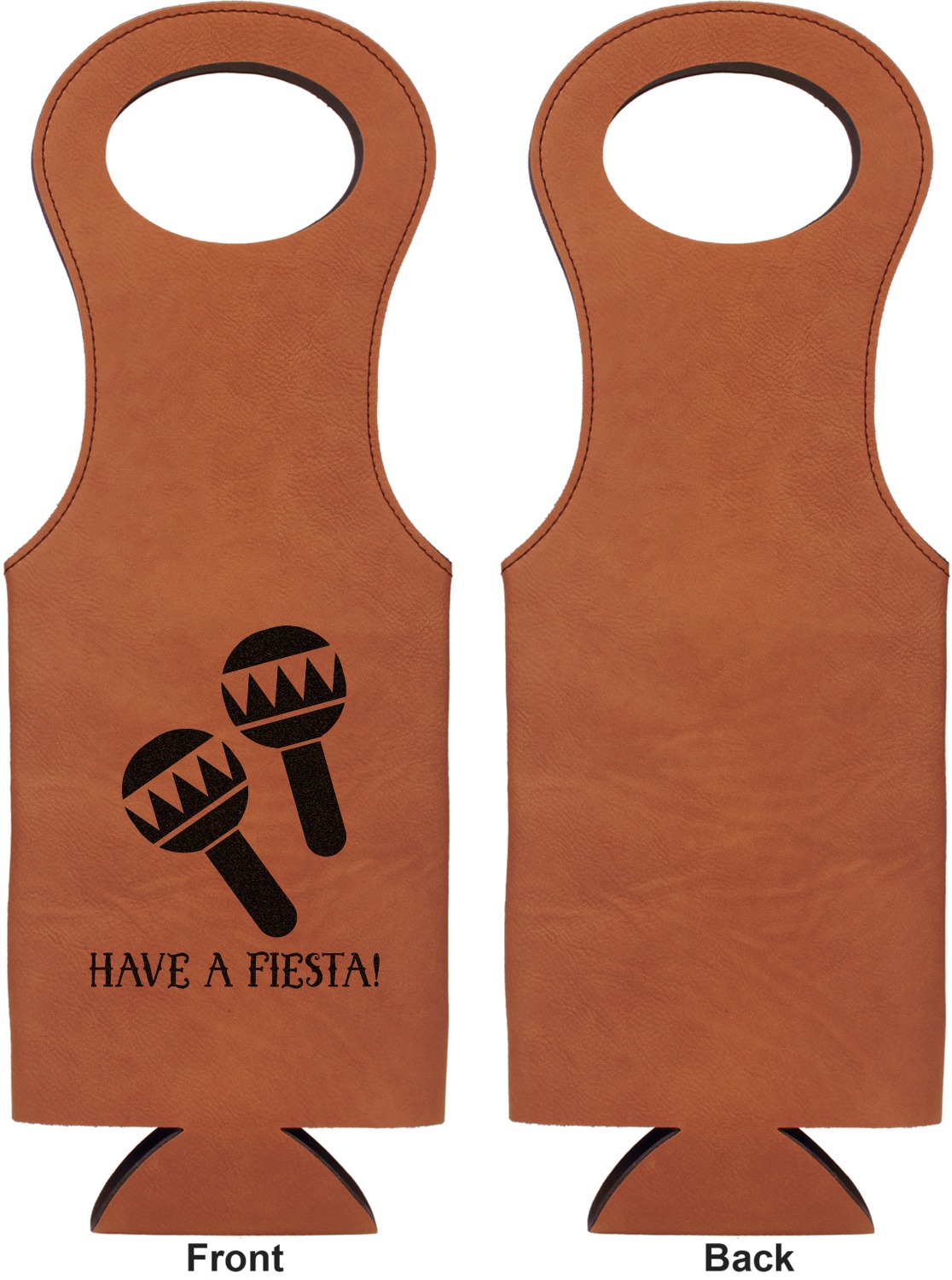 This wine carrier is made from a stunning leatherette, in a cognac-brown color. Strong, black stitching lines the sides of your wine bottle bag and provides extra durability. The interior is lined with a padded, black material to allow for a snug fit once your bottle is placed inside. At the top of this wine gift bag, you'll find two oval shaped handles that elegantly complements the rest of the bag's style. We provide you with the option of laser-engraving the front, or the front and back of your new personalized wine bag!