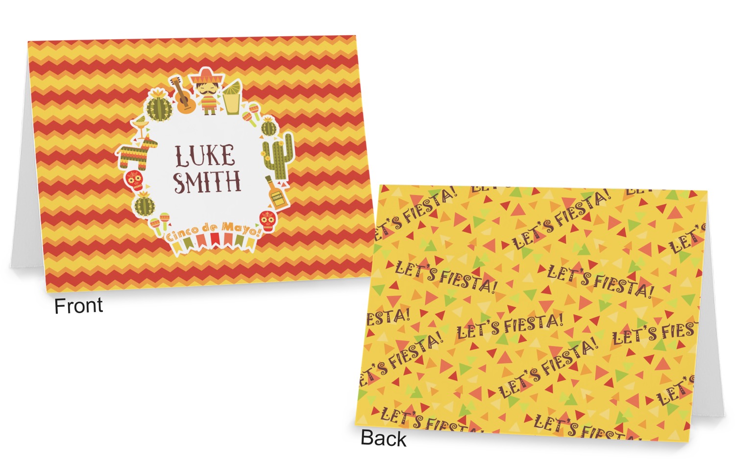 Our custom folded note cards are printed on premium 100lb. card stock and comes with white envelopes. The note card measure 5.5 by 4.25 inches and are blank on the inside for your handwritten message.