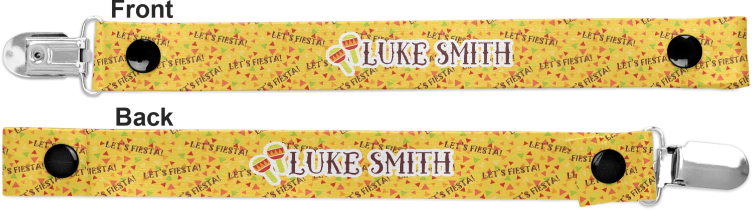 This personalized pacifier clip is the ideal size and measures at approximately 7.5 inches in length, when either end is snapped closed. On one end, you'll find a snap button. This button of your baby's pacifier holder is what can be attached to their pacifier to hold is securely in place. Simply open the snap, slip it through the pacifier opening, and snap it back into place. On the opposite end of this baby pacifier holder, you'll find a metal clip that can secure to a baby's collar or sleeve. This clip ensures that the strap stays in place, and that your baby's pacifier is always on hand.