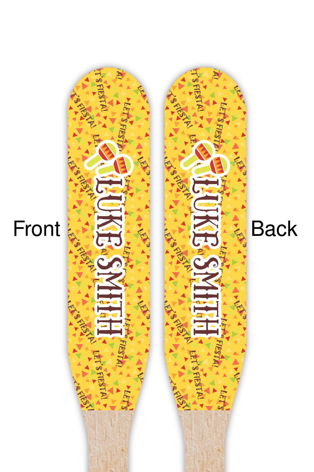 Our paddle style food & drink picks are available in 2 print styles - single sided and double sided.