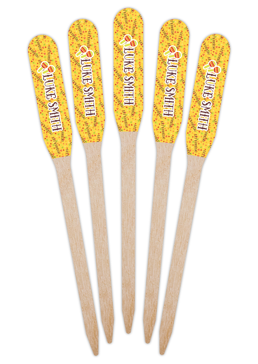Our paddle style food & drink picks are available in 2 print styles - single sided and double sided.