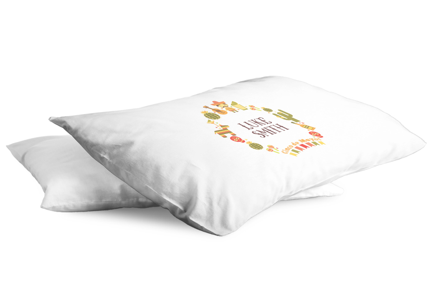 This design has many bright colors including red, orange, yellow, and green. The fun chevron gives a great pop to the fun frame that sits in the foreground. The frame has all kinds of fun illustrations like maracas, cacti, and even a mariachi man! The coordinating pattern has fun triangles all over with the phrase "Let's Fiesta!" all over as well. This really is the perfect design to get people hyped.