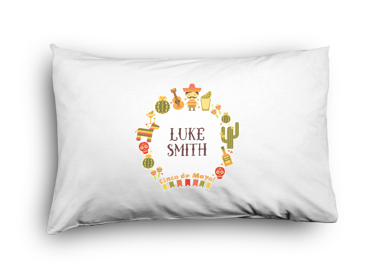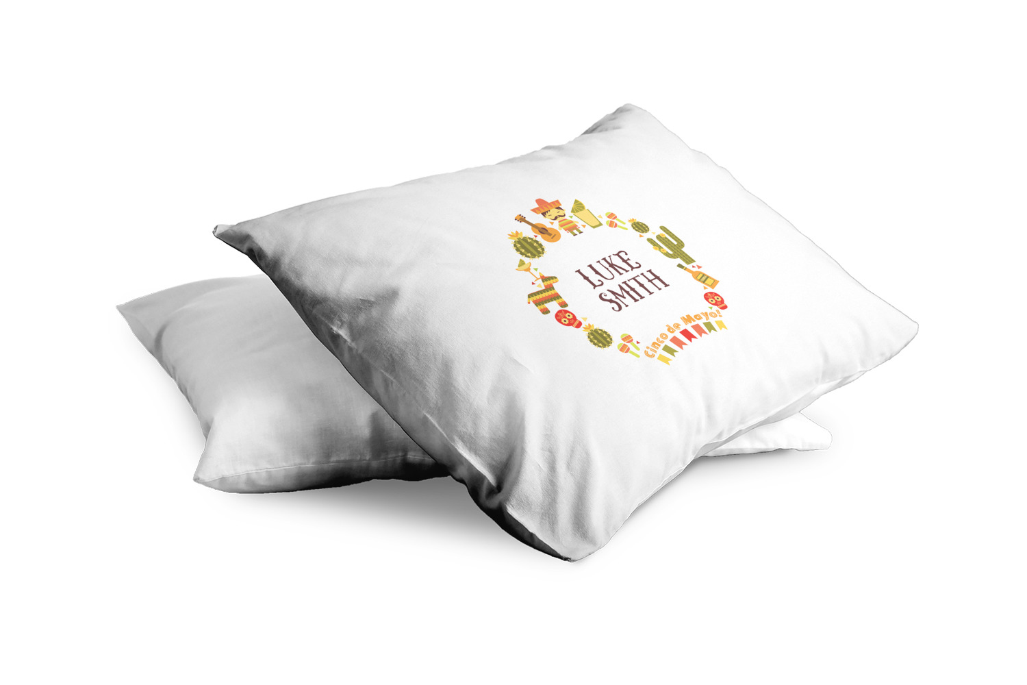This design has many bright colors including red, orange, yellow, and green. The fun chevron gives a great pop to the fun frame that sits in the foreground. The frame has all kinds of fun illustrations like maracas, cacti, and even a mariachi man! The coordinating pattern has fun triangles all over with the phrase "Let's Fiesta!" all over as well. This really is the perfect design to get people hyped.