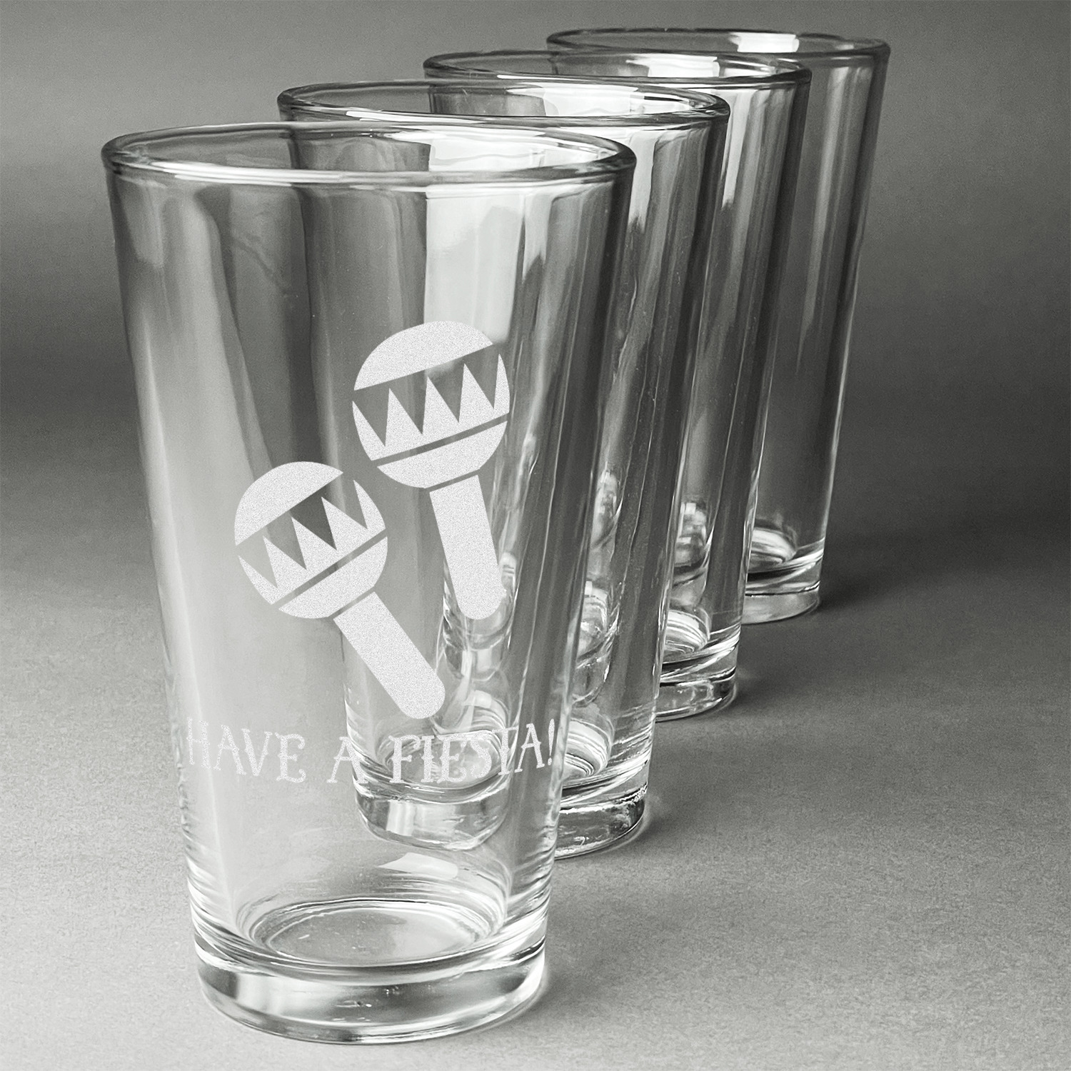 Available in a single glass or a set of 4 - each glass will be custom engraved with your design. Each glass holds 16 oz and measure 5.75"H x 3.5"W.