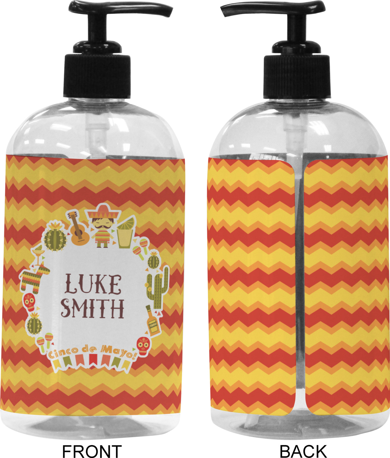 We adhere and wrap your custom printed design around the clear plastic bottle; there is a slight gap at the back for you to see the liquid level. Your design is printed on high gloss vinyl with eco-solvent inks and completely waterproof and will not fade or deteriorate over time. The vinyl is machine cut and adhered by hand to the clear plastic bottle.