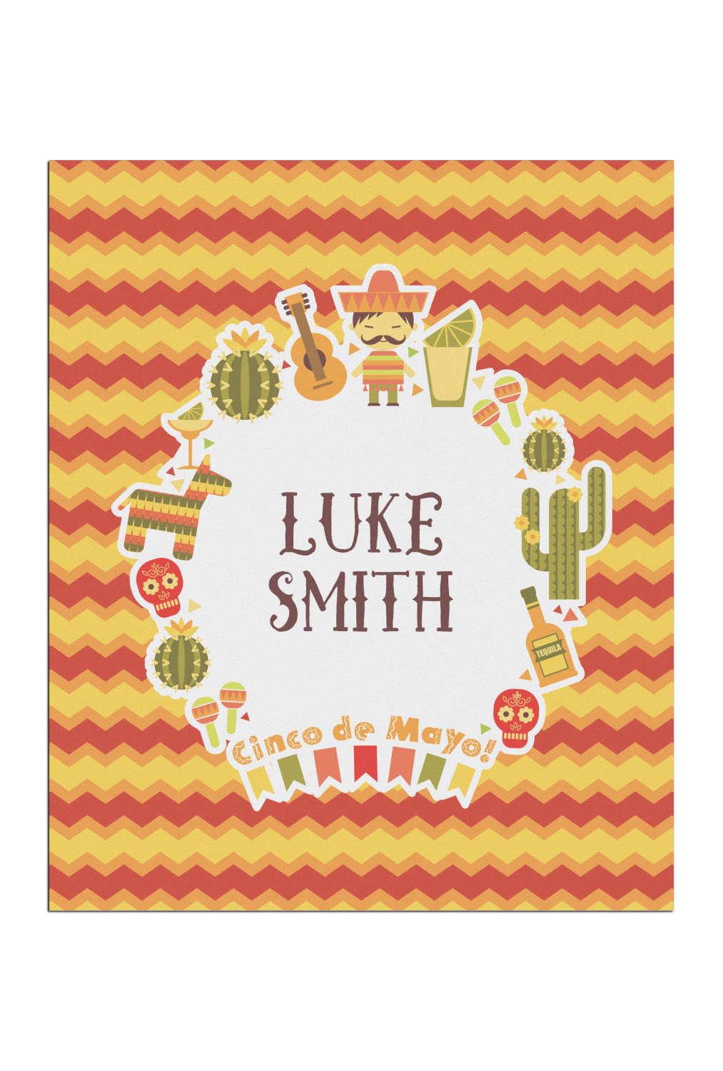 This design has many bright colors including red, orange, yellow, and green. The fun chevron gives a great pop to the fun frame that sits in the foreground. The frame has all kinds of fun illustrations like maracas, cacti, and even a mariachi man! The coordinating pattern has fun triangles all over with the phrase "Let's Fiesta!" all over as well. This really is the perfect design to get people hyped.