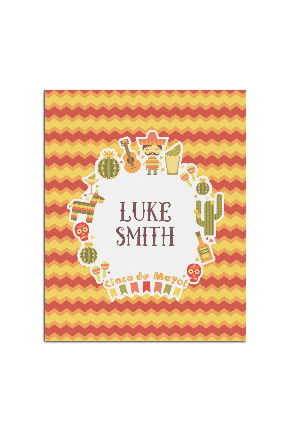 This design has many bright colors including red, orange, yellow, and green. The fun chevron gives a great pop to the fun frame that sits in the foreground. The frame has all kinds of fun illustrations like maracas, cacti, and even a mariachi man! The coordinating pattern has fun triangles all over with the phrase "Let's Fiesta!" all over as well. This really is the perfect design to get people hyped.