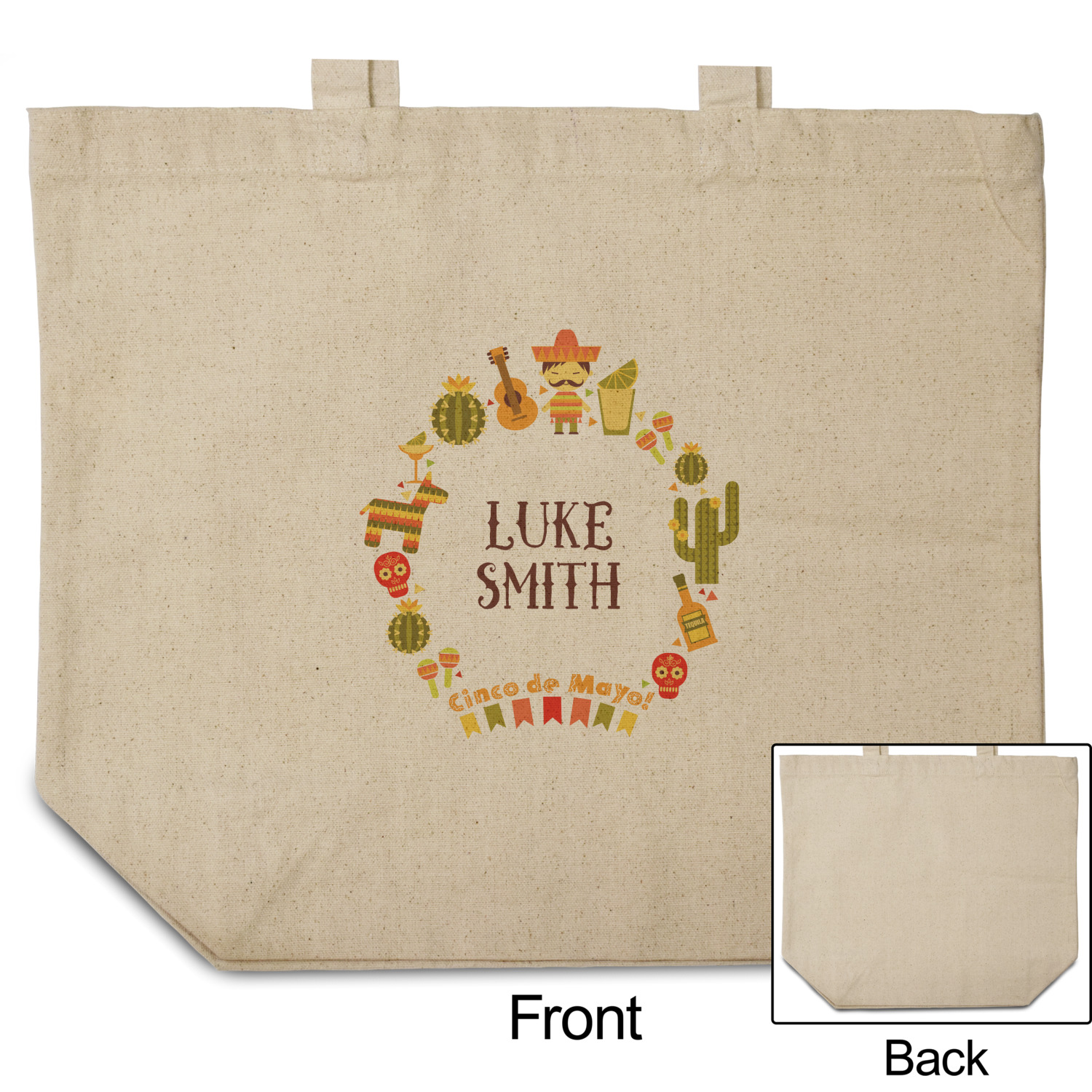These cotton totes are washable and easy to care for, and they can be folded flat for storage. Your artwork, logo, or photo is printed in full color directly on the cotton tote in the front.