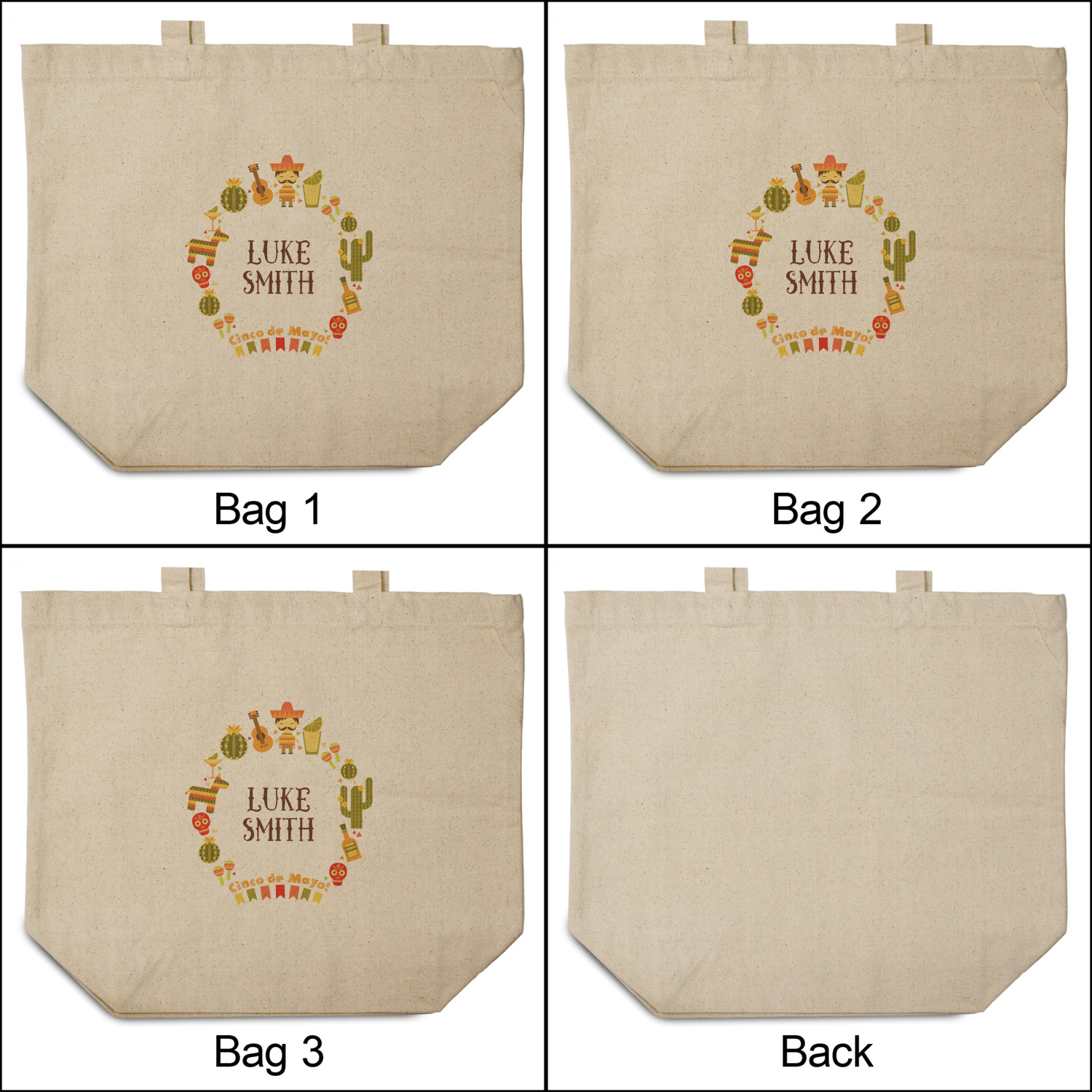 These cotton totes are washable and easy to care for, and they can be folded flat for storage. Your artwork, logo, or photo is printed in full color directly on the cotton tote in the front.