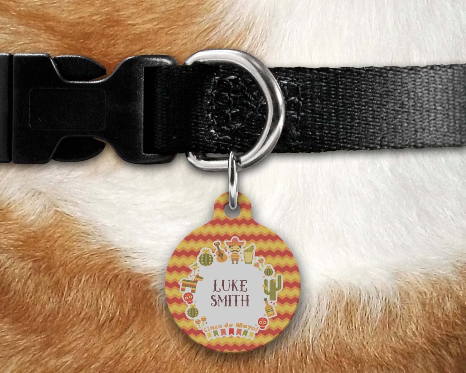 Go ahead; skip the monotony of plain pet ID tags with your very own, customized & personalized, round pet tag! This pet ID tag, fitting for both cats and dogs, will catch the eye of any onlooker (humans, canines, and felines, alike!) and accentuate your pet's individual personality.