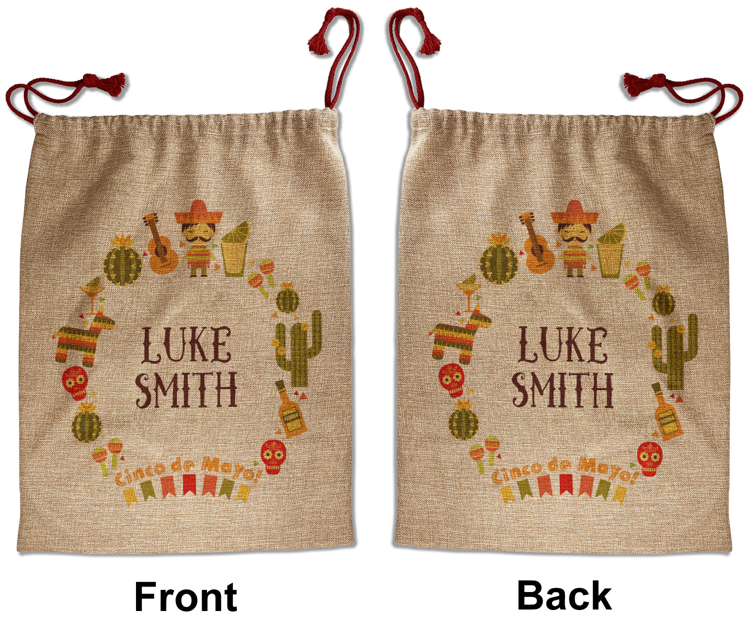 Our Santa sacks print your design on the burlap material giving it a nice rustic, natural design! The burlap material is also machine washable and wrinkle-free, so feel free to fold and store out Santa bags until the next time you need it! Secure your gifts with our red accent drawstring ties at the top of the sack so the mystery of your gift stays a surprise until Christmas day. We offer two types of printing- one side partial print or double-sided partial printing. Design and personalize your own Santa sack in time for the holidays!