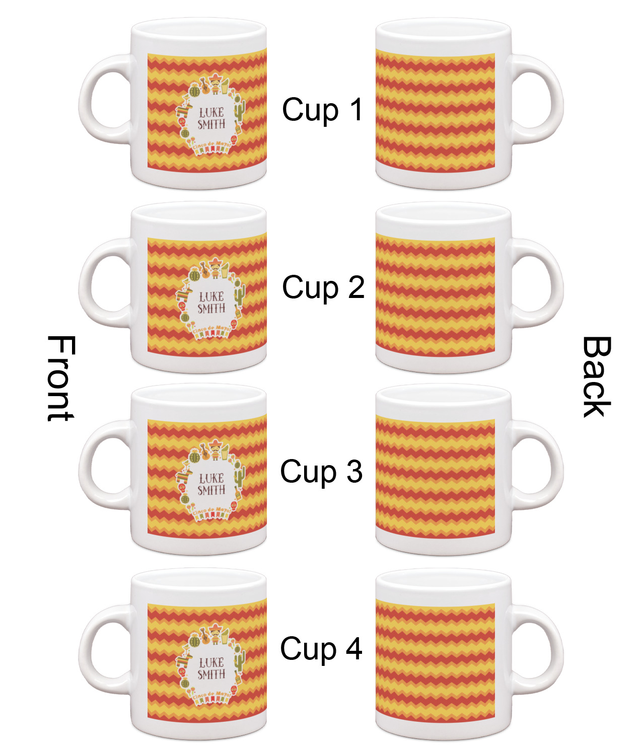 Each of our espresso mugs is a ceramic material sure to keep your drink warm. Personalize one cup for yourself, or order a set of 4! Its the perfect little gift for any coffee lover! We carry two sizes for you to personalize - 3 oz. (approx. 3.25" x 2.325" x 2.625") or 6 oz. (approx. 4" x 2.9" x 2.9"). Our 3 oz. mug is perfect for that single shot espresso while our 6 oz. mug can be your next favorite cappuccino cup holding two shots of espresso!