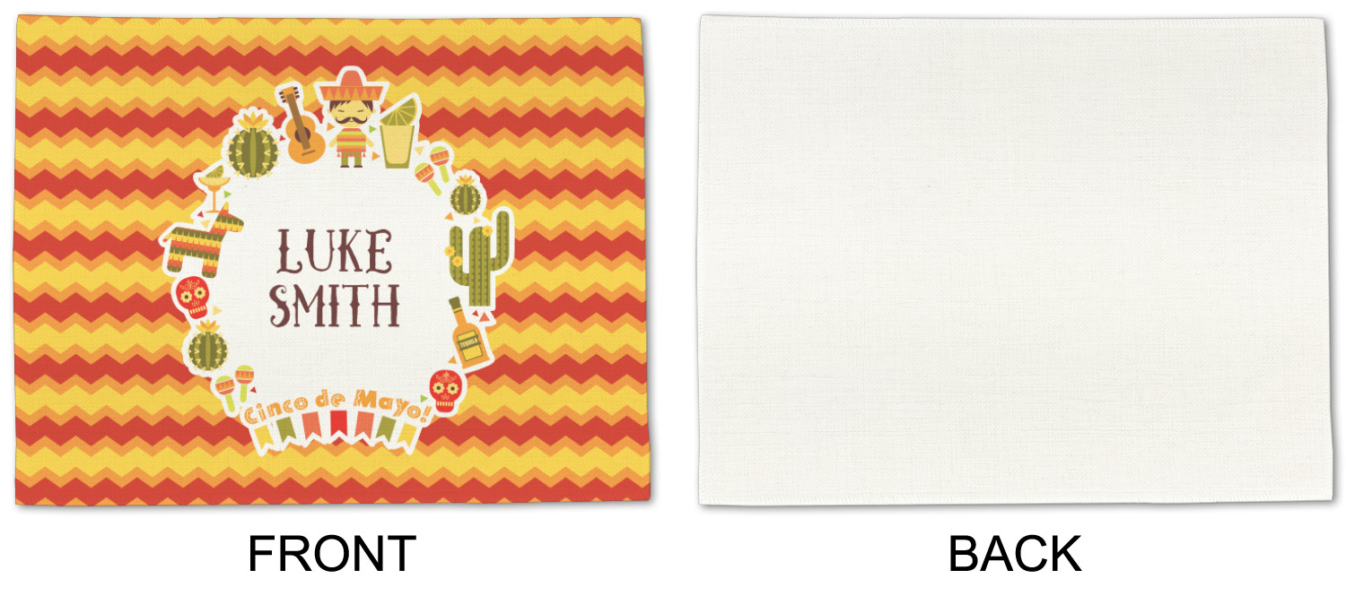 This design has many bright colors including red, orange, yellow, and green. The fun chevron gives a great pop to the fun frame that sits in the foreground. The frame has all kinds of fun illustrations like maracas, cacti, and even a mariachi man! The coordinating pattern has fun triangles all over with the phrase "Let's Fiesta!" all over as well. This really is the perfect design to get people hyped.