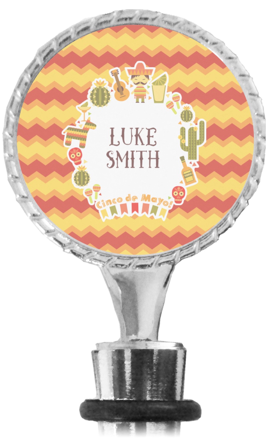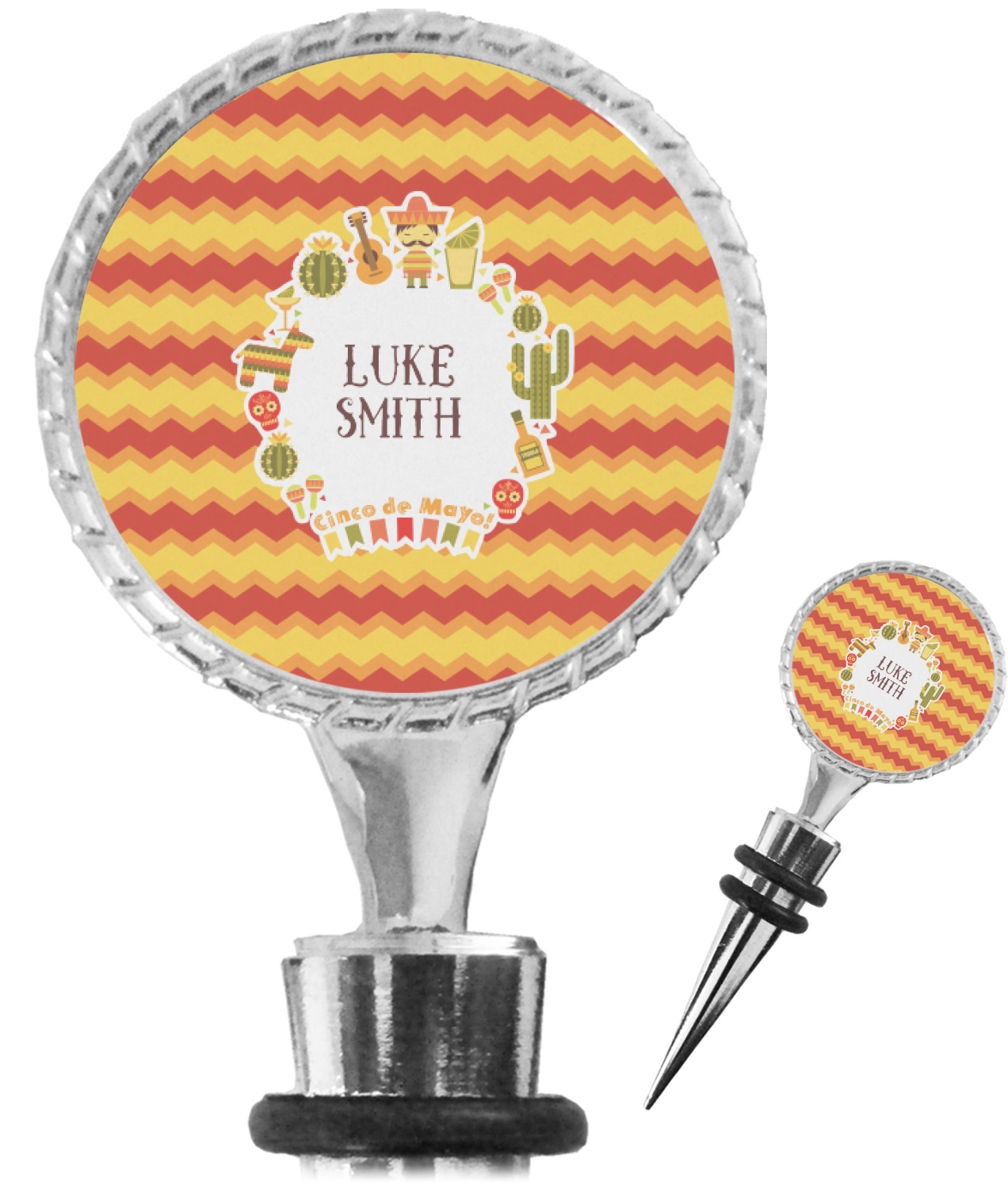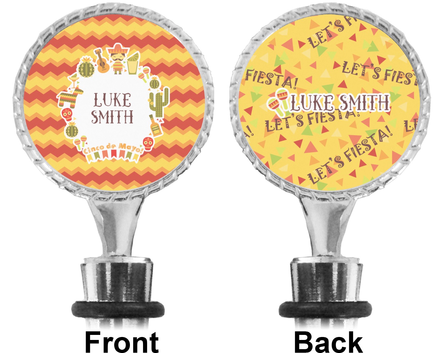 The top part of your bottle stopper is comprised of a zinc ring that displays your customization(s) in its middle, on both sides. The ring is heavy duty, with a bright chrome finish. The body of the wine stoppers have two silicone rings to provide an airtight seal. These wine bottle stoppers measure at 1.625" L x 0.8125" W x 4.625" H; your custom wine stopper is meant to fit into most standard-sized wine bottles.