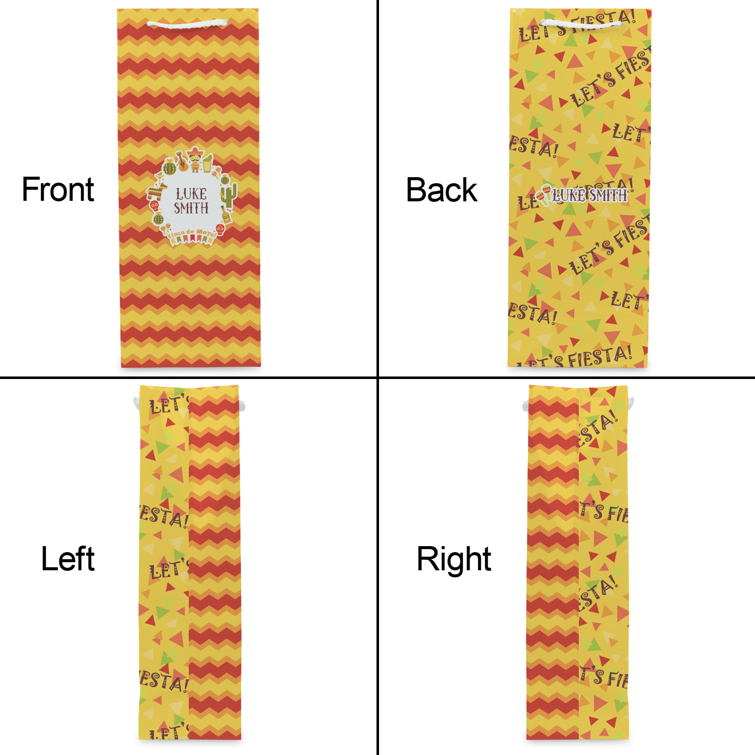 Our wine bags are printed on premium paper. The bags are then cut, scored and folded. The handles and cardstock base it attached. These custom wine bags are printed and made in the USA.