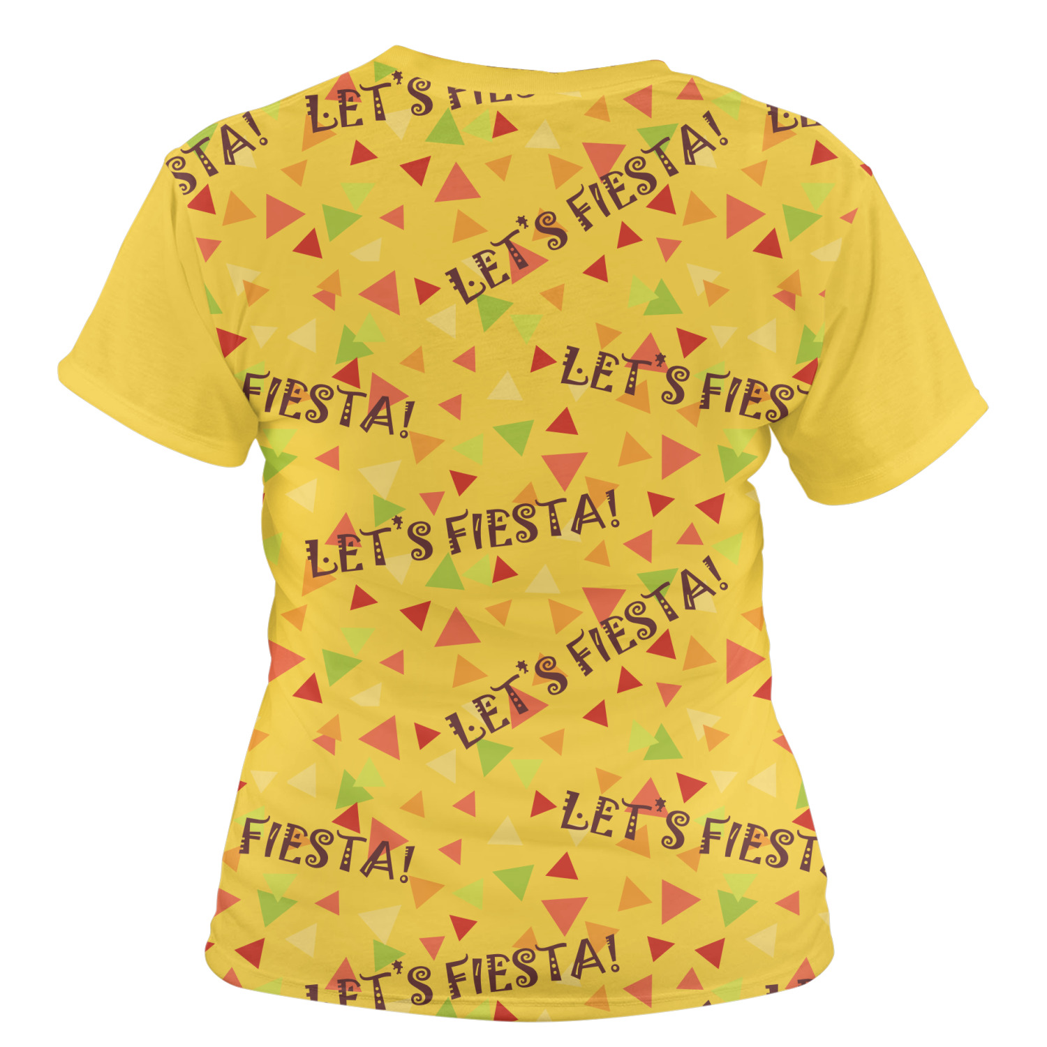 This design has many bright colors including red, orange, yellow, and green. The fun chevron gives a great pop to the fun frame that sits in the foreground. The frame has all kinds of fun illustrations like maracas, cacti, and even a mariachi man! The coordinating pattern has fun triangles all over with the phrase "Let's Fiesta!" all over as well. This really is the perfect design to get people hyped.