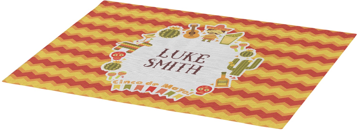 Each of our table mats are a poly twill material with woven burlap detailing. This creates a soft, quality placemat for us to fully print your personalized design across. The woven twill also adds a wrinkle-free surface to set your table! Each customizable placemat is a rectangle shape measuring at approximately 13 x 18 and printed here in the USA.